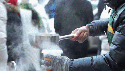 2025年1月30日,游客在哈尔滨中央大街上购买“烟囱冰淇淋”。