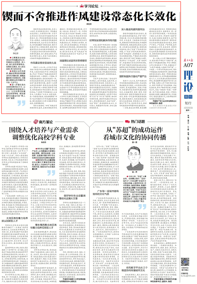 推进作风建设常态化长效化,要以多种方式强化作风教育,引导党员干部加强理论武装,筑牢思想堤坝,自觉养成严格遵守中央八项规定及其实施细则精神的好习惯。要突出党的优良作风传统教育,同时把理想信念教育、党的群众路线教育等贯穿于党员干部作风教育的全周期、全过程,引导党员干部从中汲取奋进新征程的精神动力,时刻牢记初心使命,永葆党的先进性纯洁性。