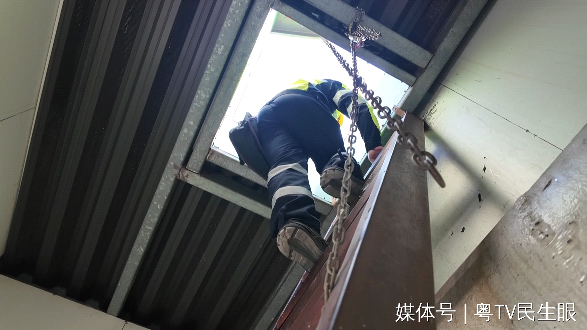 黄荣彬他们这次上来要修整老化的玻璃胶条。