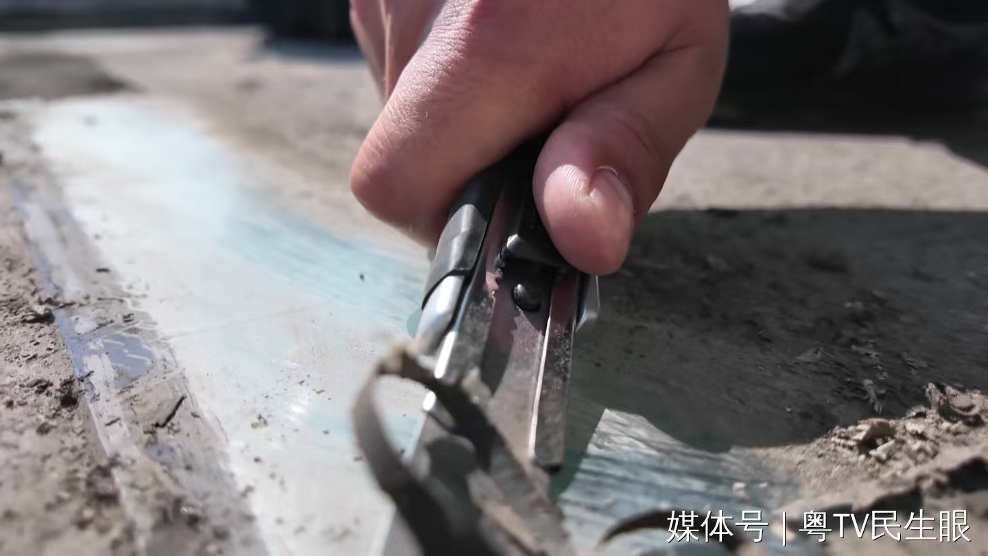 国铁广州局广州南房建工区工长 黄荣彬:玻璃胶条老化了,如果下雨,雨水会沿着老化的胶条渗进去,我现在就是要把失效的防水条全部割掉,重新做一层防水。