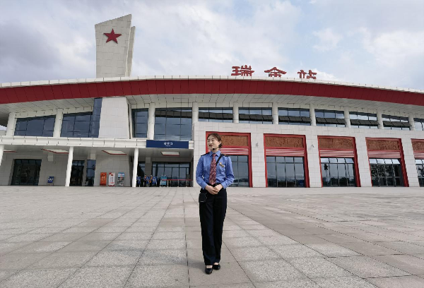 图片来源:中国铁路南昌局集团有限公司 瑞金车站售票员王瑜,利用休息时间在车站当起兼职红色讲解员。“大家首先看到的便是瑞金火车站站前广场主题雕塑,雕塑参考当年苏维埃共和国党、政、军、群领导人当年留影照片,从东至西依次是刘少奇、项英、周恩来、毛泽东、朱德、张闻天、博古……”每当有团体旅客来到车站,希望了解浮雕故事时,王瑜都会在引导他们进站乘车的同时娓娓道来,一个个党史故事。