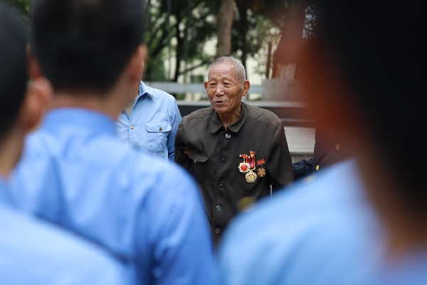 向先烈献花。图片来源:中国铁路南昌局集团有限公司 据介绍,永安烈士陵园占地面积15余亩,是全国唯一一座以纪念建设铁路而牺牲的先烈为主题的爱国主义教育基地。于1958年4月由原铁道兵8511部队修建,安葬建设鹰厦铁路牺牲的19位战士。后被永安市确定为爱国主义教育基地,并于2013年扩建了烈士悼念台,重新树立永安革命烈士纪念碑,并将第二次国内革命战争、抗日战争、解放战争,以及在剿匪斗争和社会主义建设时期英勇献身的170位烈士英名镌刻于此,供后人瞻仰。 当天,已95岁高龄的安徽籍铁道老兵营道修向采访团讲述了当年鹰厦线建设的往事。“我是一名炮兵通信兵,哪里有需要就去哪个战场。”营道修说。1953年在抗美援朝战争中,他所在的部队任务非常艰巨,以农建第五师为基础整编为志愿军铁道工程第十一师,担负桥梁架设,铁路铺设和线路维护抢修任务。回国后,营道修积极响应国家号召参与修建广西黎湛线,随后跟随部队来到福建参与鹰厦铁路建设,负责抢建沙县到桂口93千米的线路。“刚到施工现场,没有住的地方,我们只能从河对岸砍来毛竹搭建营房。当时没有船,我们就用身体在冰冷的河里来回穿梭运输,冬天零下几度的河水冻的所有人浑身发抖”营道修说。