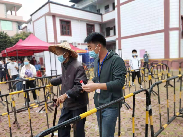 在台商投资区里春村党总支和退役军人服务站号召下,10名退役军人志愿者奔赴里春村各个设卡点和全员核酸检测点协助开展疫情防控服务工作。他们在自己的岗位上严防死守,实行24小时三班轮流,参与测体温、查看健康码、通行证检查核实等工作。