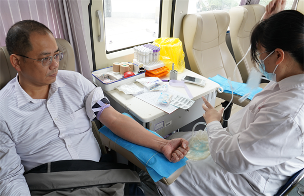 驻浦部分武警战士黄海鹰(穿军装站在最右边)带队依序献血 “这是我第六次献血,献血量总计有2200毫升,定期献血有益健康,这是爱心的传递,意义非凡!”在漳浦服役10年的武警战士黄海鹰在献血车上说道。前段时间跳湖救人的老兵林武汉则表示,生命不可再来,血液可以再生,献血是我们的举手之劳,予手之香,为社会献一点微薄的力量。