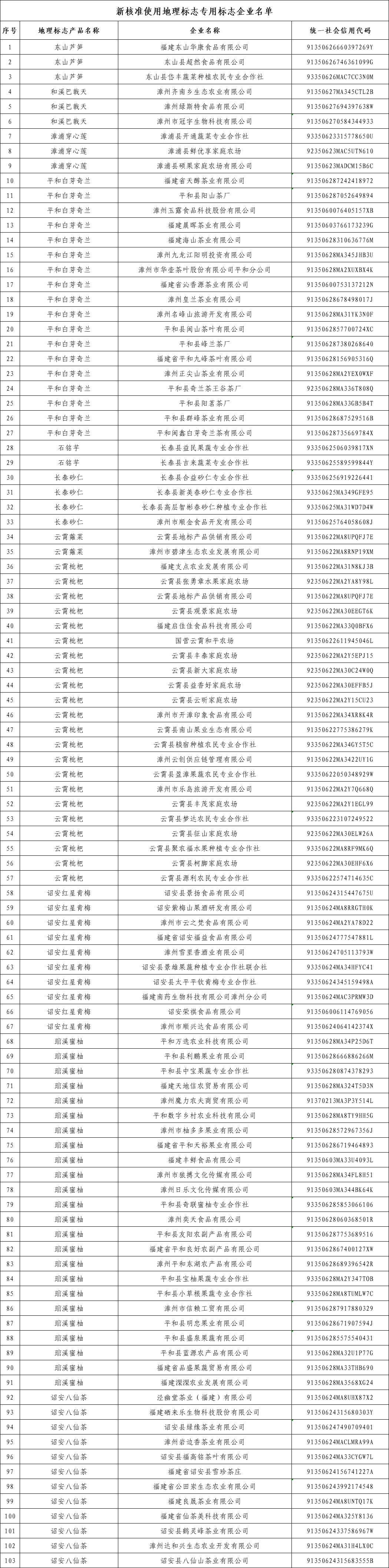 新核准使用地理标志专用标志企业名单