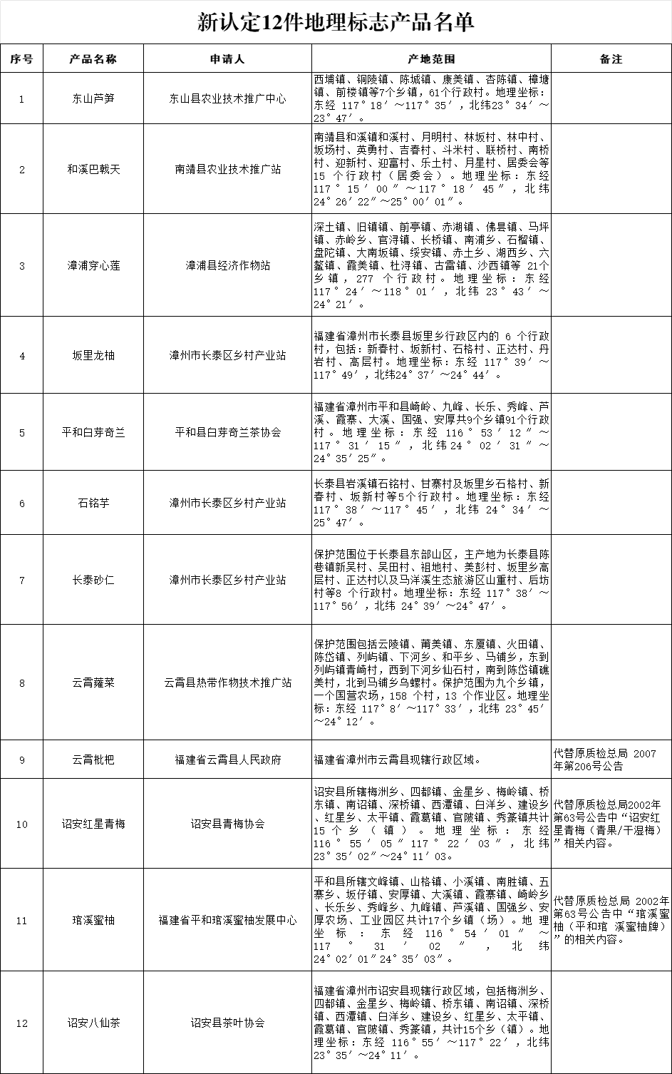 新认定12件地理标志产品名单
