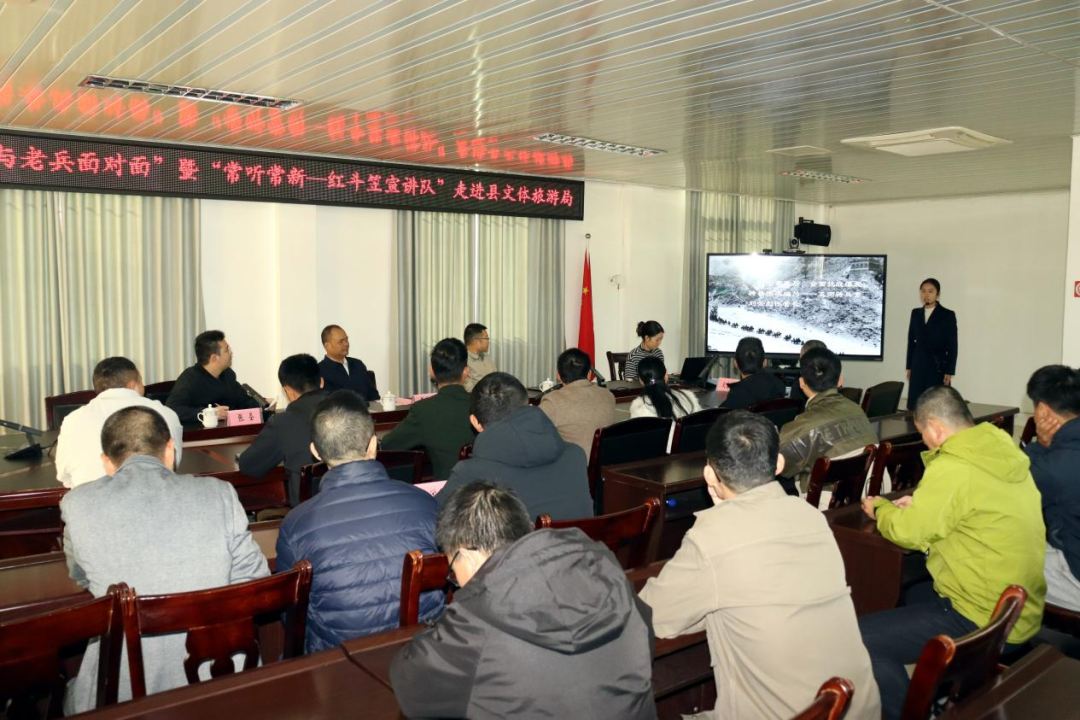 12月10日,龙岩市长汀县退役军人事务局组织“我与老兵面对面”暨“常听常新——红斗笠宣讲队”走进县文体旅游局,开展主题宣讲活动。活动通过讲述红色历史、分享老兵故事,推动英烈精神与军人本色在文体旅游系统深入人心、扎根生长。